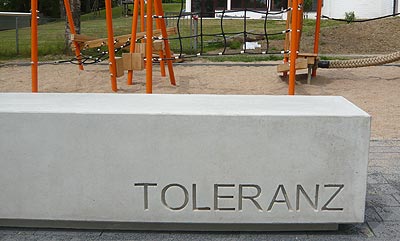 Nutzungsschwerpunkte. Betonblöcken bekommen durch eingravierte Begriffe, die von den Bürgern ausgewählt worden, eine Individualität