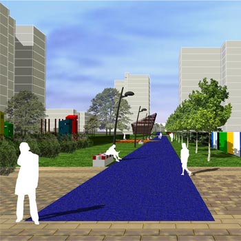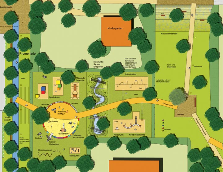 Im Rahmen des Landesprogramms NRW „Soziale Stadt“ wurde unter Beteiligung der Bewohner eine prozesshafte Planung der Aussenanlagen erstellt.